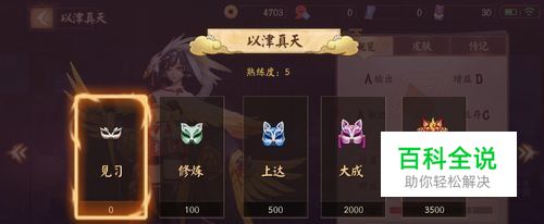 熟练度有不同的等级: 熟练度依次是有很多的等级的,我们通过游戏的行为,就可以不断的提高、提升我们的熟练度,觉醒的话,需要到达第四个等级,才算可以哦,需要加油了。