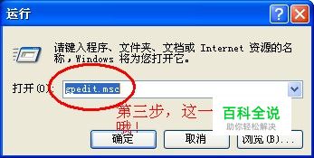 我们需要点击“开始——运行”,然后输入“gpedit.msc”(不带引号)
