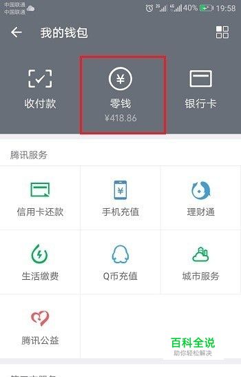 第二步进去钱包界面之后,点击零钱,如下图所示: