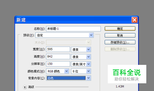 首先启动Photoshop cs5,新建一个大小为595*842,分辨率为150,背景颜色为白色的文档。
