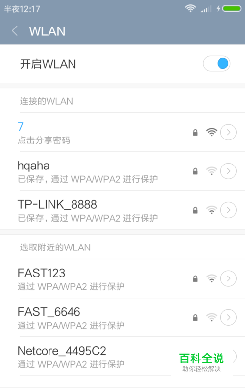 用手机搜无线,看周围又没有无线信号。如图在你键盘上找到有无线开关功能的那个键,这个键一般需要配合Fn键使用,即按住Fn键的同时再去按这个键。如果没有这个键,那么在你的笔记本四周看有没有无线网卡的开关,如果有,开关一下试试,看能否搜索到无线信号。