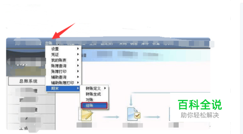 第一步就是打开电脑,安装好软件,点击打开软件,进入总账系统主页面,点击【总账】-【期末】-【结账】,如下。