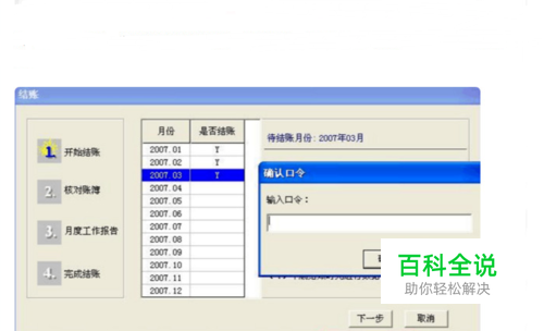 第二步就是在弹出的新对话框中,先选中要结账的最后一个月,按键盘的ctrl加shift加F6,在输入正确的主管账号的【口令】即可。这是结账的操作。