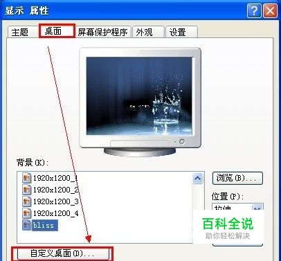 右键点击电脑桌面空白处, 然后点击属性!! 进入属性页面之后切换选项卡 至 桌面。 然后点击下面的自定义桌面按钮!!