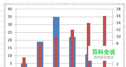 这样,双纵坐标轴的图表就制作完成了,至于双坐标轴的典型应用--柏拉图,小编会在后续的相关经验中进行重点介绍。