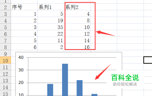 在已经有的图表上,右键单击选择“数据源”之后,调出数据选择框,选择添加对应的第二列数据。