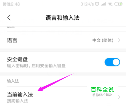 单点开【语言和输入法】后,单点开【当前输入法】,如图。