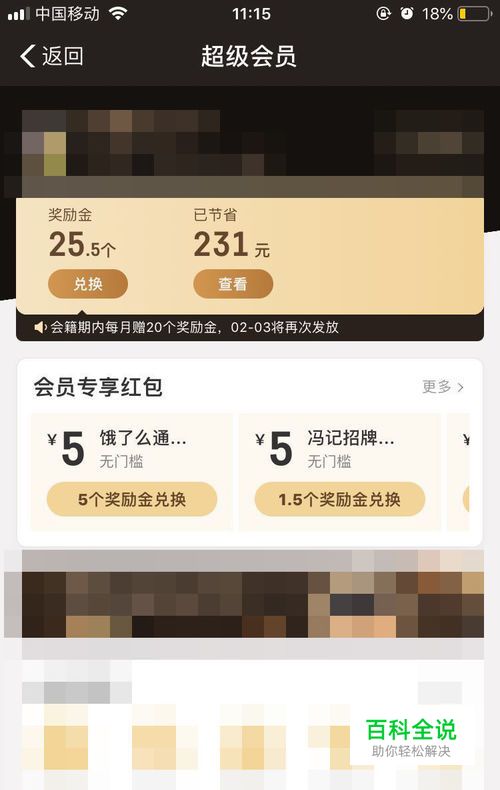 兑换红包: 开通会员之后,我们在选择外卖的时候,中间会有一行多少多少奖励金,然后可以去兑换红包,我们点击查看更多进入专门的奖励金界面,选择合适的店铺来兑换红包。