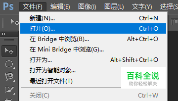 打开PS软件,点击“文件”→打开