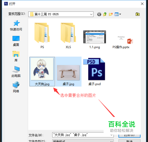 复制显示图层(本案例为大天狗)到桌子中:点击大天狗图片标题,在图层面板,选中当前图层,右击选择“复制图层”,在弹出的对话框中的目标位置,点击下拉按钮,选择目标位置“桌子”。操作如图。