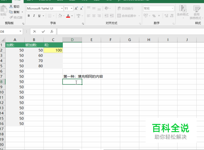 如果是一序列有规律的数,自动填充会按规律填充。例如50、60、70……填充后会自动填充为80、90、100、……