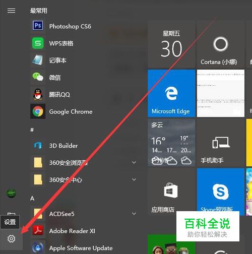 点击屏幕左下角的开始,然后点击设置;