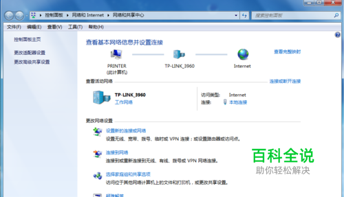 打开网络和共享中心