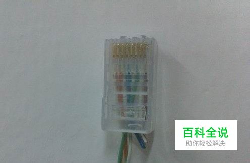 将另4跟内线蓝、白蓝、白棕、棕色插入水晶头的1、2、3、6的位置,4578在用剪掉的那5厘米的线进行代替,方法如下: