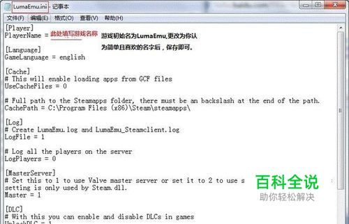2.右键点击文件,选择打开方式为记事本,在playername=【填写游戏名称】,然后点击保存即可。