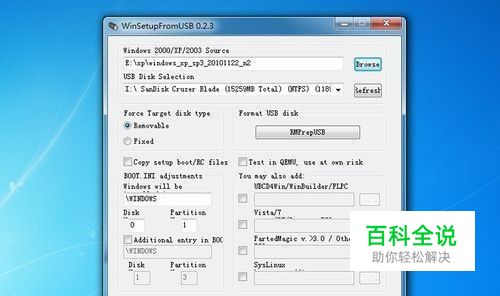 用优盘安装Windows XP需要另一款软件的支持,它就是WinSetupFromUSB。这款软件不但可以支持Windows 2000/XP/2003这三款操作系统,而且也支持Windows Vista和Windows 7操作系统