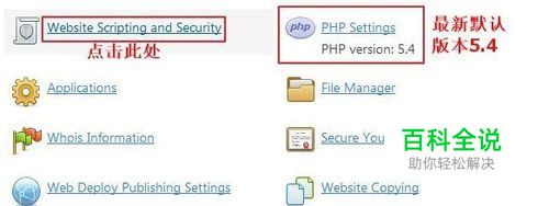 1.首先进入Godaddy美国主机Plesk面板后台,在Websites & Domains模块可看到如下图所示的信息,会发现当前Godaddy美国主机PHP版本默认为5.4。这里我们若要更改的话需点击左边“WebsiteScripting and Security”功能。
