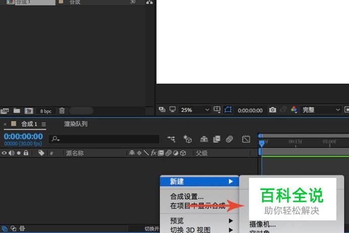 合成创建完成之后,右键点击左下角图层栏,然后新建一个纯色图层。