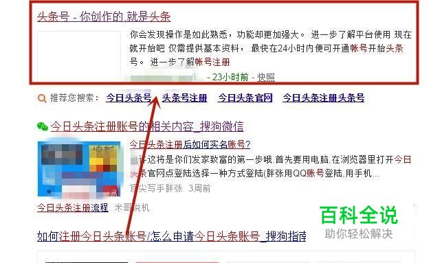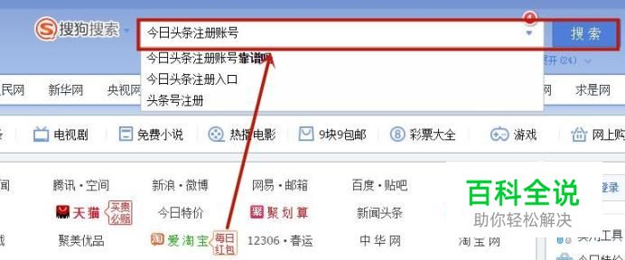 首先在搜狗浏览器中输入今日头条注册账号并点击回车键,如下图所示。