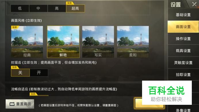 当然还可以对游戏的画面风格进行设置,主要有4个风格可以进行选择。