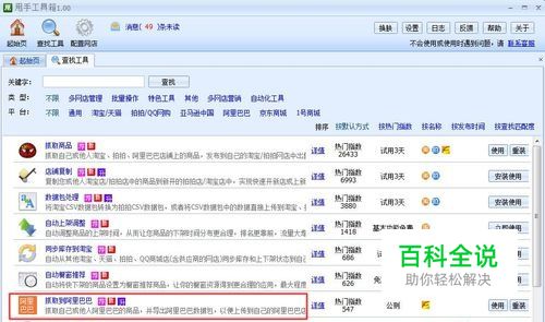 1、打开甩手工具箱,然后找到“抓取到阿里巴巴”工具,然后点击后面的安装,完成之后,把你想抓取的商品地址放到地址栏里面,然后抓取即可。