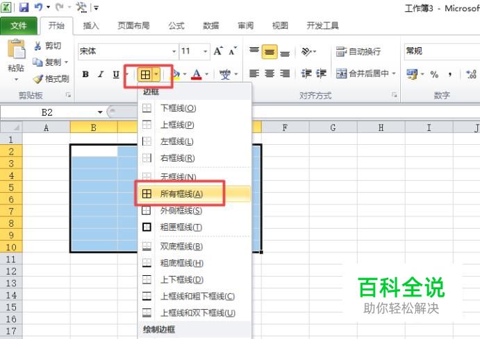 然后我们点击工具栏中的边框按钮,弹出的界面,我们点击所有边框;