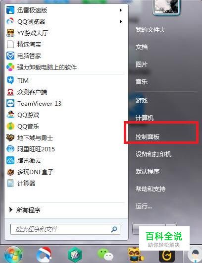 首先,打开桌面左下角的“开始”菜单,点击进入“控制面板”。