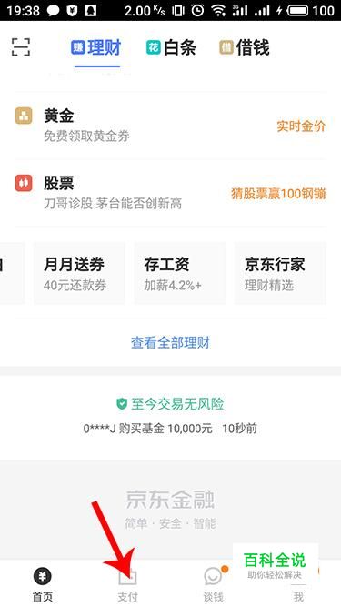 在应用市场下载安装“京东金融”,安装完成之后点击进入,在下方选择“支付”