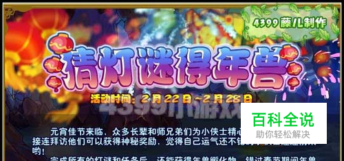 2月22日~2月28日期间只能参加一次哦~只要完成所有NPC的猜灯谜和闹元宵就可以领取年兽了哦!