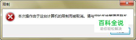 在数据数值里填上任意你想要阻止运行的程序启动文件名称,确定后就可以尝试运行一下刚刚被设置禁止运行的程序了。 如果需要对多个程序进行限制,可以重复第5和第6步,逐个添加目标程序。若不再需要限制某个程序,只需删除对应字符串。当你运行这个受限制程序的时候,就会收到如下图提示。如果限制未起效,请重启系统。 这个方法和传统的组策略相比,它不受软件所在位置影响,即无论这个软件安装在什么路径都会被限制。但是它也不是没有破解招数,用户只需更改相关启动程序的文件名即可避开这个限制。所以还需要和来宾帐户一起使用才能起到更好的效果,因为在来宾帐户下,修改文件名是需要管理员权限的。