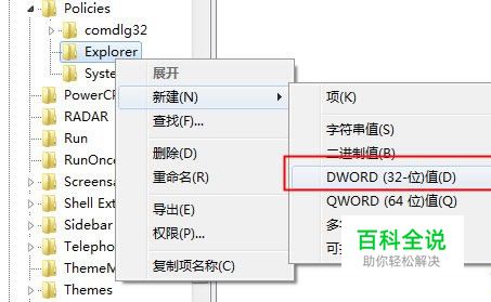 接着在Explorer上右击鼠标,新建--DWORD (32位)值,将其命名为 DisallowRun,注意大小写。