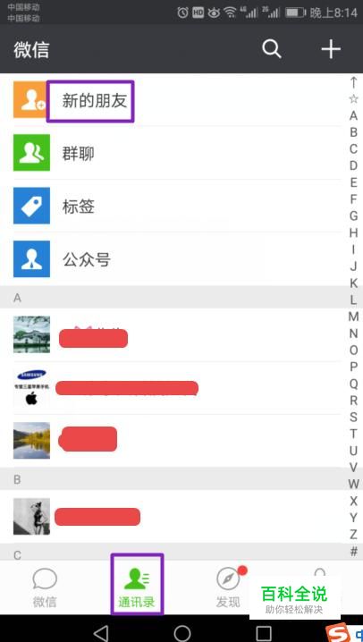 弹出的界面,我们点击通讯录,然后点击新的朋友;