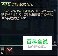 前往角斗场,决斗10次 (与其他玩家PK十次,无论胜负均可完成任务,实在不想和别人PK的就双开刷自己的小号吧)