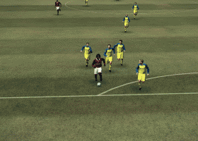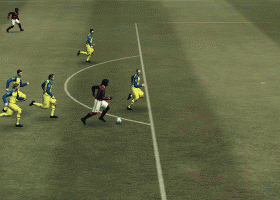 首先请看视频,接下来再慢慢讲解:先按下射门键,再按短传取消射门,就是假射。在2009中,假射过人是很强大的,它会导致后卫做出伸腿拦球的停顿动作,从而给前锋突破留下充足时间。但在2010中,假射的作用方式有很大的变化,射门之后马上就按短传取消,不能达到骗取后卫的效果。必须在射门的摆腿动作出来之后,再按短传取消,才能对后卫起作用。而且,射门键+短传键的操作方式会导致球员有一个很大的停顿动作,过人效果不好。我把这个方法做了一点改进——先按长传,再按短传取消,停顿动作更短促,效果更好,之后可以衔接任意方向的加速变向过人,自由度很大。 再次强调,按长传键之后必须等长传摆腿动作出来之后再取消才有骗后卫的效果,这个动作持续时间只有零点几秒,按晚了,变成长传,按早了,骗不了后卫。 先来看最简单的一个例子,视频中的第一个进球,连续三次使用了同一种过人方式——后卫在前锋身侧同向跑动,前锋落后1个身位。前锋按出假射,后卫马上做了一个伸腿拦球的停顿动作,前锋直线加速,将后卫甩在身后。