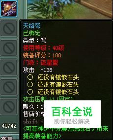 看到极品镶嵌的宝石是普通攻击、暴击和远程攻击。 普通攻击和远程攻击都好理解,为什么要镶嵌暴击石头呢?因为这个属性是强化不出来的!!只能通过洗炼和镶嵌宝石来实现!! 按照极品预览的提示,镶嵌一下宝石试试: 没有镶嵌过宝石是这样的,攻击只有138,评分也只有188,镶嵌一下3级宝石试一试