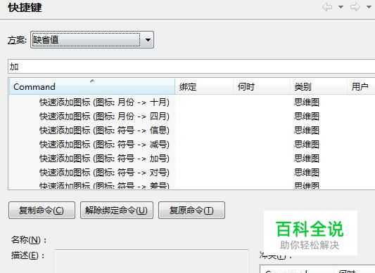 XMind思维导图中,XMind快捷键是一项重要的功能,平时我们肯能不会太注意这个功能,但在关键的时刻它却能帮助我们缩短大量时间,提高工作效率,同时,用户还可以根据个人需求对快捷键操作按钮进行设置,本篇基础教程就讲解了XMind首选项之快捷键设置。 打开XMind工作界面后,在右上角工具栏中点击最后的首选项图标。在跳出的窗口中,点击常规中的快捷键。 方案:选择快捷键编辑的方式,缺省值为系统默认,或者选择Emacs宏编辑器方案来进行设置,这个根据个人操作习惯来制定。 复制命令:选中对话框内任一操作,点击复制命令即可将该快捷键设置进行复制。 解除绑定命令:点击即可解除当前快捷键命定所绑定的操作。 复原命令:复原初始快捷键操作命令。 在左下方的窗口中,可以点击操作进行XMind快捷键命令绑定。我们先选中想要进行快捷键设置的选项,在窗口中就会显示当前的名称、描述、绑定信息,可以直接在绑定文本框中输入想要绑定的快捷键操作,点击确定即可。 并且不同担心快捷键重叠问题,在右下方的窗口则可以检查XMind快捷键命令之间是否有冲突。