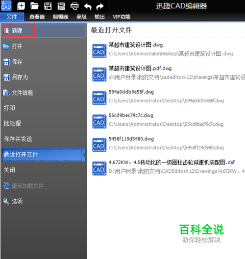 软件打开之后,我们点击“文件”下的“新建”,新建一份图纸。