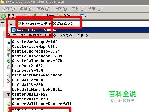 首先我们要检查的就是沙巴克文件是否正确,这个主要看的就是沙巴克城门血量是不是正确的,正确的应该是城门应该是10000城墙应该是5000这个才是正确的配置如果不是你修改正确就可以了。 路径:D:\mirserver\Mir200\Castle\0\SabukW.txt(如图)