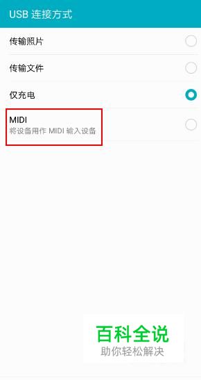 在手机中将USB连接方式更改为MIDI。一般来说这样做以后,手机驱动会自动安装到电脑设备中,当然有事也会因为系统原因而安装失败。