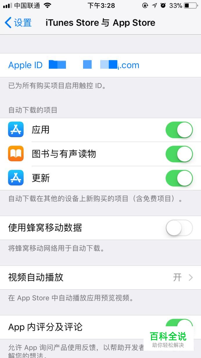 下翻找到“iTunes store与App Store”整个选项,点击进入我们可以看到,现在登录的ID,如图所示。