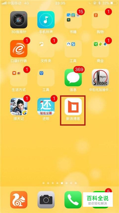 首先在我们的手机桌面上找到新浪博客并点击它,如下图所示。