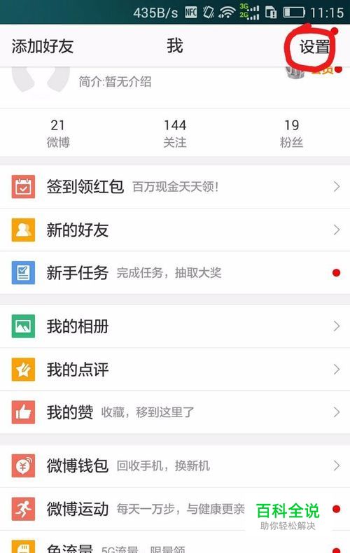 首先打开微博的“我”的界面,然后点“设置”