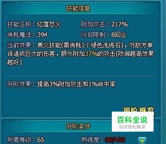 个人习惯使用方法: ①对方敏捷比自己高:“霸王破阵”—“红莲怒火”,如果第一回合宝宝给力破个甲,输出数字更华丽。 ②对方敏捷比自己低:“嘲讽”—“红莲怒火” 当然这两种只是常规的使用方式,技能的回合数比较长,有机会就可以考虑使用。 提醒大家,要提高自己的命中属性,一招“红莲怒火”过去MISS实在是伤不起!技能低级时命中效果一般,升级技能命中会提高,所以技能升级优先,装备要打命中石。