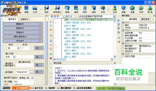 76175《武林之王》是个纯鼠标操作的网页游戏,键盘所能起的作用笔者目前只发现能够聊天,如此简单操作特点正是按键精灵发挥特长的最佳战场。按键精灵有一项录制操作的功能,可以把一段时间内你对鼠标和键盘的所有操作记录下来,而且还能编辑、播放。这使得即便是我这样对代码一无所知的玩家也能轻松利用按键精灵帮忙做一些略微复杂的体力活。最简单的比如说,录制一段打“鼠儿果”的操作,当你的掌门令没有了后或者睡觉前,可以执行录制好的脚本挂机打个够。需要注意的是,按键精灵记录的鼠标移动轨迹和点击位置是针对屏幕上的坐标,在一台电脑上录好的脚本换了电脑就不一定能用了;同一台电脑换了不同的浏览器或者右侧滚动条位置改变,或者浏览器设置改变导致网页上按钮坐标变化都可能使原先录好的脚本发生执行错误。所以,在执行已录制好的按键精灵脚本时,要确保网页上各个按钮的位置与录制时基本一样。