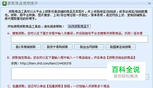 抓取商品系列功能所应用在的平台很多,其最常用的抓取淘宝、抓取阿里、抓取拍拍功能等抓取功能的抓取步骤都大同小异,那么这里便以抓取苏宁为向导; 先登录帐号选择抓取苏宁;