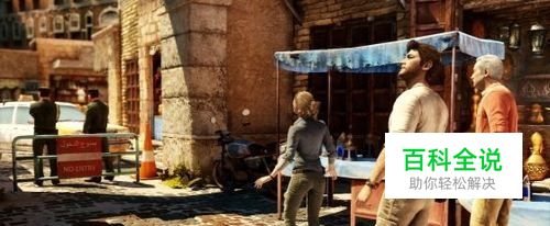 2 从市场绕过开始爬墙前进,在阳台上看到了这个小镇的全貌。发现下面的黑衣人后Drake单独跟踪,虽然被发现但是成功偷出笔记本。