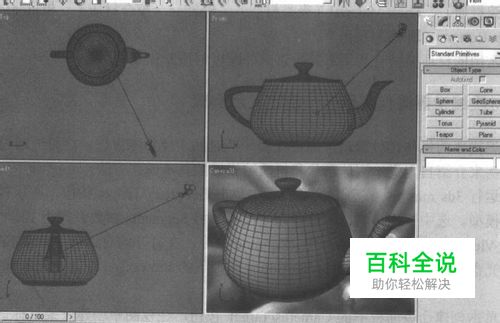 (1)运行3dmax,在创建命令面板中单击Geometry/Teapot按钮,在顶视图中创建一个茶壶模型。选中茶壶模型进入修改命令面板,将Segments参数设置为120执行Views菜单中的Viewport Background命令,在打开的对话框中单击Files按钮,然后选图片。(2)单击创建命令面板中的Cameras/Target按钮,在视图中创建一架目标摄影机.激活透视图后按下“C"键切换为摄影机视图,然后调整摄影机视图的角度如图4-11所示。