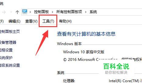 首先,打开我的电脑,鼠标右击,选择属性,可进入如图所示的界面。在此界面中,我们点击界面上方的"工具"。