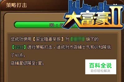 要进行策略攻击,先点击对方店铺,在小名片上点击店铺名称,进入店铺信息画面。你会在右下方看到策略打击的标记。安全隐患举报,这招可十分的狠,假冒成消费者向有关部门恶意举报,迫使店铺停业整顿,能够同时降低对方店铺人气和认知。散布假货谣言,正所谓“好事不出门,坏事传千里”,若你向消费者们制造一些有关你敌对商铺销售假货的谣言,减少顾客对店铺的信任度,降低对方认知。假扮刁蛮顾客,有事无事假装一下刁蛮顾客进入别家店铺闹事,想想也是一件挺有趣的事,这样不但对对方员工制造麻烦,减少工作积极性,能够降低对方士气。 当你对敌方进行这些战略部署,敌人也是到了被你秒杀的时候了,在商业大道上,你必须把敌人给秒杀了才能登上商业王国的巅峰宝座!在要玩《大富豪2》里,你不但要善于经营,还要善于“出招”,出其不意攻其无备!更多欢乐更多有趣就在要玩《大富豪2》,赶快来加入这个大家庭吧! 好玩当然要玩!要玩网页游戏平台目前运营着时下最火热的傲视天地、龙将、天地诸神、列侯、神仙道、盛世三国、傲视遮天、侠义世界、大富豪2等三十几款最受欢迎的精品网页游戏。为不同兴趣的玩家打造更加优质的网页游戏服务平台,创造最优秀的产品体验及用户游戏交流空间。