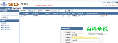 在前台添加桌面区域(查询),编码以及中文名称自行拟定